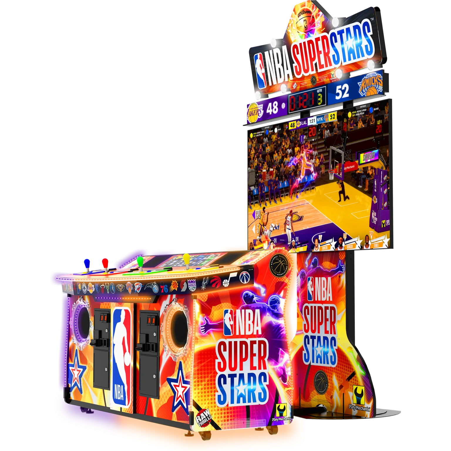 The NBA Superstars Arcade Machine marks the highly anticipated return of officially licensed NBA arcade basketball gaming after more than three decades. Developed by Raw Thrills and Play Mechanix in partnership with the NBA and NBPA, this high-energy arcade machine delivers an action-packed, competitive basketball experience designed for modern entertainment venues.